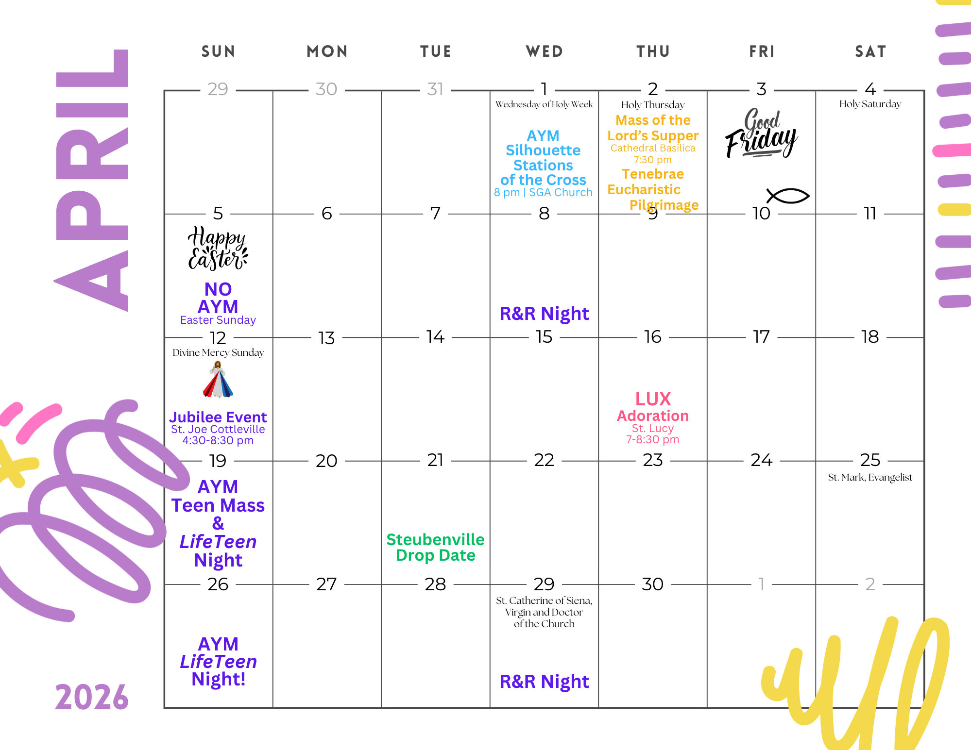AYM covers the parishes of St. Gabriel and St. Raphael in the St. Louis Hills Neighborhood and is open to ALL high school teens. No sign-up necessary! High schoolers can attend on a regular basis or drop-in as it fits their schedule!